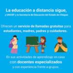 La Secretaría de Educación del Estado de Chiapas, en conjunto con el Fondo de las Naciones Unidas para la Infancia (UNICEF por sus siglas en inglés) pusieron en marcha el Programa de Apoyo Educativo Telefónico a fin de brindar atención a estudiantes de educación primaria, a madres, padres de familia y/o tutores.