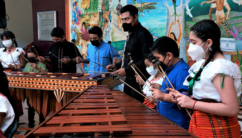 Los niños y niñas enfundados con ropa tradicional, ejecutaron con magistral destreza las piezas que han practicado en las clases impartidas en el Museo de Tapachula (MUTAP).