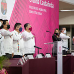 A su vez, la alcaldesa hizo lo propio con el síndico municipal Santiago Azael Ancheita Calderón; los regidores propietarios Gladiola Soto Soto, Carlos Enrique Ventura Mirón, Lorena López Solís, Alexis Gabriel Martínez Carbajal, Adriana Cristina López Vázquez y Erik Hintze Moreno, así como las regidoras plurinominales Aida del Rosario Flores Vázquez, Martha Carballo Andrade y Lucía Guadalupe Díaz Robles.