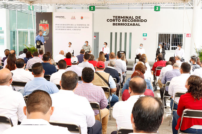 Durante la reinauguración de la Terminal de Corto Recorrido de Berriozábal, el gobernador Rutilio Escandón Cadenas expresó su respaldo a las y los transportistas federales de este municipio, quienes, gracias a la suma de esfuerzos, hicieron posible la construcción de esta terminal que genera 70 empleos directos y 40 indirectos, y beneficia a 11 mil usuarios.