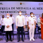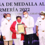 El gobernador Rutilio Escandón Cadenas encabezó la ceremonia de entrega de la Medalla al Mérito de Enfermería Chiapas 2022, a la enfermera Nelva Gálvez García, como reconocimiento a su vocación de servir con humanismo, solidaridad y amor al prójimo, a favor de las chiapanecas y los chiapanecos, así como su aportación a la academia y el fortalecimiento del modelo de salud basado en la inclusión, que ha permitido proporcionar servicios de salud, privilegiando el lenguaje materno de los grupos étnicos de Chiapas.