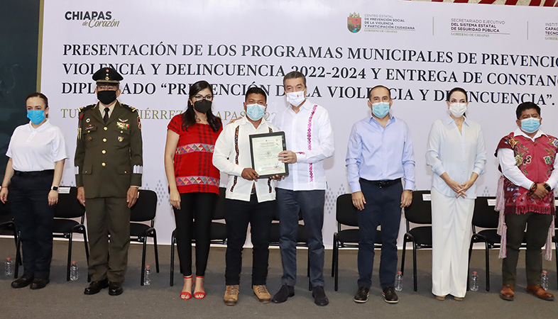• En este marco, el gobernador realizó la entrega de constancias del Diplomado Prevención de la Violencia y Delincuencia