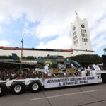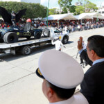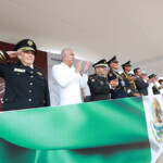 • Acompañado de los comandantes de la VII Región Militar y de la XVI Zona Naval observó el paso de los diferentes contingentes civiles y militares