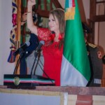 Acompañada de los comandantes de la 36ª. Zona Militar, Miguel Ángel Hernández Martínez y el representante de la XVI Región Naval, Miguel Ángel Nava Villavicencio; integrantes del Cabildo y autoridades civiles estatales y federales, desde el balcón principal del Museo de Tapachula, la alcaldesa lanzó vivas a los héroes que nos dieron patria y libertad.