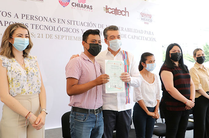 “Reconozco el trabajo conjunto del Sistema DIF Chiapas, el Instituto de Capacitación y Vinculación Tecnológica del estado, y del Centro Estatal de Prevención Social de la Violencia y Participación Ciudadana, porque están demostrando que cuando se trabaja en unidad y se suman esfuerzos, recursos y voluntades, se pueden atender y sacar adelante las necesidades más sensibles de la gente. Sigamos con este trabajo conjunto para que las y los chiapanecos tenga mayores oportunidades para salir adelante”, apuntó.