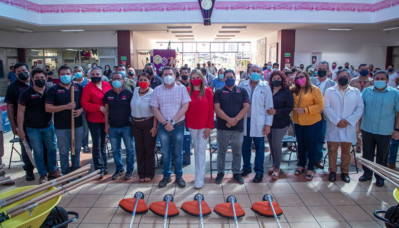 En el marco del programa operativo “Panteones Limpios y Seguros”, la presidenta municipal de Tapachula, Rosa Irene Urbina Castañeda, hizo entrega de maquinaria y equipo a personal de la Secretaría de Servicios Públicos, encargados de la limpieza y mantenimiento de los camposantos.