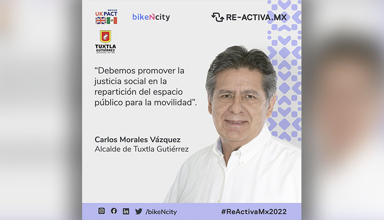 Por esto, RE-ACTIVA.MX iniciativa de bikeNcity, con apoyo del Reino Unido, a través del programa México-UK PACT (Partnering for Accelerated Climate Transitions o Alianza para las Transiciones Climáticas Aceleradas) entrevistó al alcalde Carlos Morales, como parte de la estrategia de reconocimiento a los 10 gobiernos seleccionados.