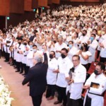 Agradeció la orientación y presencia de sus maestros en la Facultad de Medicina, al tiempo de manifestar gratitud hacia sus colegas y en voz del gremio médico pidió hacer un esfuerzo para homenajear a las compañeras y los compañeros fallecidos durante la pandemia.