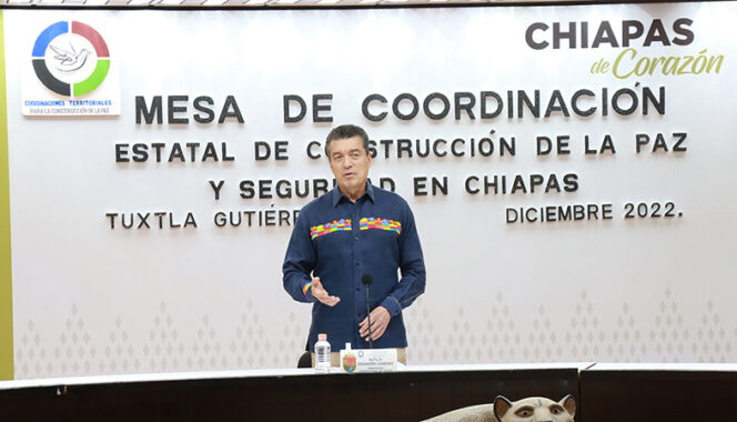 En el marco de la Mesa de Seguridad Estatal que todos los días encabeza en Palacio de Gobierno, el gobernador Rutilio Escandón Cadenas destacó que en las últimas 24 horas, correspondientes al viernes 9 de diciembre, Chiapas registró saldo blanco en delitos de alto impacto, derivado del trabajo disuasivo que realizan las fuerzas de seguridad y gracias al comportamiento responsable de la población.