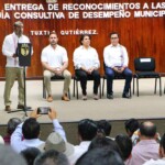 “En Chiapas trabajamos en unidad para fortalecer la capacidad de los municipios en la atención de las necesidades del pueblo. Por eso me da satisfacción ver que las y los alcaldes están avanzando y desempeñando bien su labor. Invito a que más ayuntamientos se sumen a estas tareas que permitirán no sólo fortalecer sus responsabilidades, sino recuperar al 100 por ciento la confianza del pueblo en sus instituciones”, manifestó al felicitar también a las instituciones de educación superior que calificaron la gestión administrativa de los ayuntamientos.