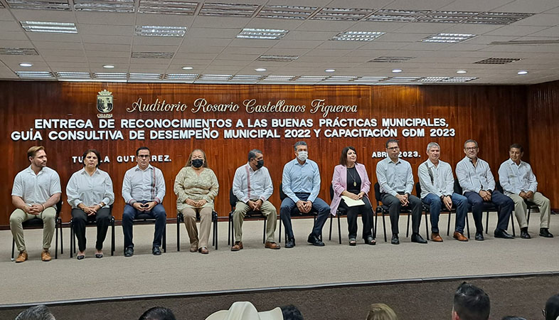 El Ayuntamiento de Tapachula recibió el reconocimiento a las buenas prácticas municipales por el avance logrado en la implementación de la Guía Consultiva de Desempeño Municipal 2022, en una ceremonia presidida por el gobernador del estado, Rutilio Escandón Cadenas.