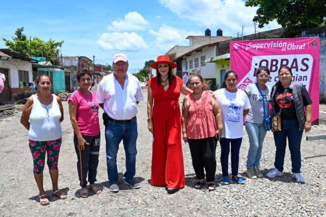 La presidenta municipal de Tapachula, Rosa Irene Urbina Castañeda supervisó el avance de la pavimentación hidráulica de calles en la colonia Calcáneo Beltrán, acompañada del titular de Obras Públicas y vecinos del lugar.