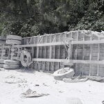 El suceso derivó de la volcadura de un tráiler cargado de calhidra, el cual presentó falla en sus frenos impactándose contra varios vehículos.