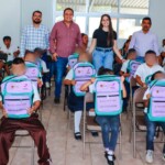 Junto al delegado del DIF Regional, Félix Ruiz Rivera y de directores de las escuelas beneficiadas, Irene Rubiera Urbina hizo la entrega de las mochilas y los útiles escolares, a fin de promover la permanencia de niñas y niños dentro de las aulas.