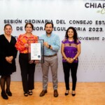 Dijo que por primera vez se logra aprobar con el 98 % el diagnóstico de la herramienta “Despliegue de Infraestructura Pasiva de Telecomunicaciones”, perteneciente al Programa de Reforma a Sectores Prioritarios. Asimismo, somos la primera entidad federativa del Sureste de la República en obtenerla. Y también es la primera vez que se entrega en un Consejo Estatal, 5 certificaciones de las herramientas que la Comisión Nacional de Mejora Regulatoria pone a disposición de los estados y sus municipios.