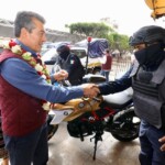 En Las Margaritas, el Gobernador Rutilio Escandón Cadenas y el Secretario Ejecutivo Sergio Alejandro Aguilar Rivera, entregaron 365 kits de uniformes, 20 equipos antimotin, 8 patrullas y 6 moto patrullas.
