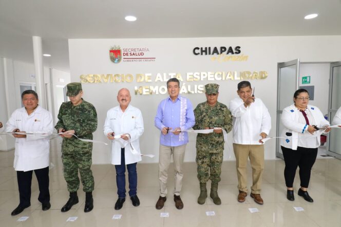 En la inauguración del área de alta especialidad en hemodiálisis del Hospital General de Huixtla, el gobernador Rutilio Escandón Cadenas sostuvo que este gobierno de la Cuarta Transformación ha priorizado la inversión en materia de salud, a fin de garantizar infraestructura digna, equipamiento moderno, medicamentos e insumos y personal especializado para brindar este tipo tratamiento a quienes lo requieren, de manera gratuita y sin distinción.