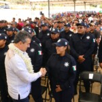 Señaló que, desde el inicio de este gobierno, se ha atendido a la policía con dignidad, al mejorar sus condiciones laborares, con el único propósito de que las y los elementos cuenten con lo necesario para hacer frente a cualquier adversidad y cumplir con su labor de defender, proteger y auxiliar a la sociedad ante cualquier acto delictivo.