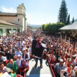 Gritos a unísono “Eduardo” reciben al precandidato único de la coalición Seguiremos haciendo historia en Chiapas, Eduardo Ramírez Aguilar, en los municipios de Chenalhó y San Cristóbal de Las Casas.