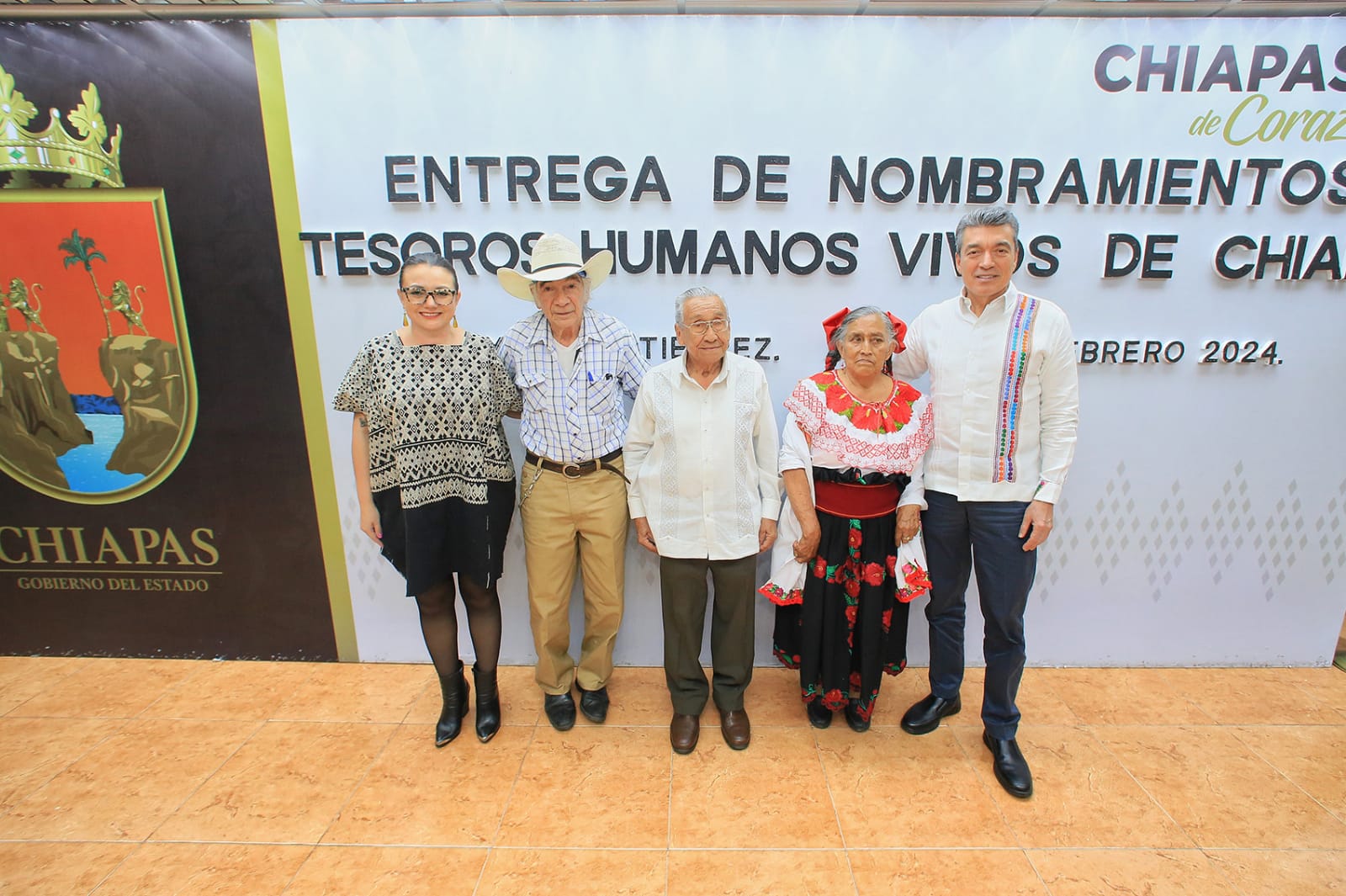 En la ceremonia de entrega de nombramientos Tesoros Humanos Vivos de Chiapas, el gobernador Rutilio Escandón Cadenas expresó su alegría por ser parte de este acto que reconoce el trabajo sensible y comprometido que mujeres y hombres realizan en sus comunidades al resguardar y promover las riquezas históricas y culturales que engrandecen a Chiapas ante México y el mundo.