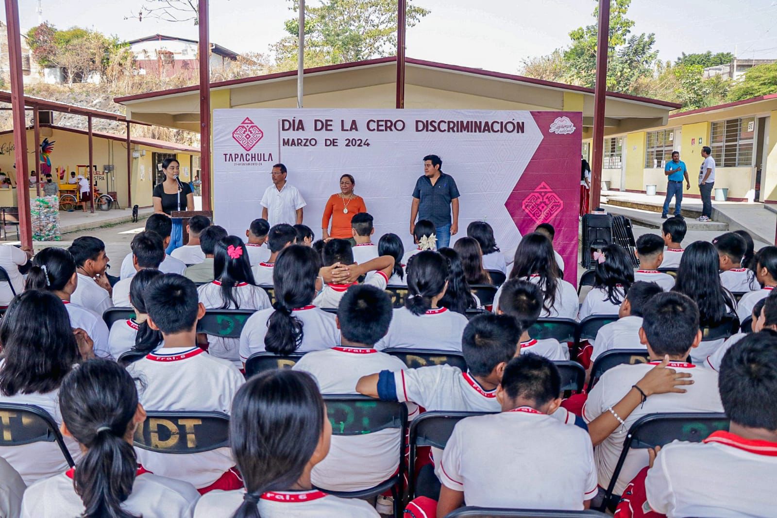 Con la participación del personal docente y estudiantes de la Escuela Secundaria Federal No. 6 “Juan de la Barrera”, el Ayuntamiento de Tapachula a través de la Secretaría de la Juventud y Deporte Municipal, conmemoró el “Día de la Cero Discriminación”.