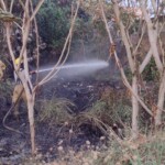 El segundo llamado de emergencia, fue para controlar el incendio en la colonia Santa Bárbara donde el pastizal era consumido en un terreno de 20×6 metros.