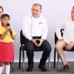 Finalmente, la niña Zoé Alisson López, de 5 años de edad, representando a la comunidad escolar, agradeció por la remodelación de su escuela ya que, dijo, esto permitirá que sus compañeras y compañeros logren aprender y disfrutar de este espacio confortable y digno.