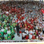 Asimismo, llamó a todas y todos a construir una nueva era basada en el Humanismo Mexicano, que tiene que ver con la construcción de un pensamiento distinto, “yo sé que la política es pasión, es emoción y también es razón, pero si a la política no le ponemos contenido social, si no le ponemos principios, si no le ponemos bases muy sólidas, como son los valores humanos, de nada sirve la política, porque solamente se ambiciona el poder por el poder y aquí, en la nueva era, no estamos por el poder”.