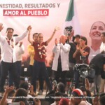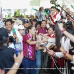 “Estamos recibiendo a la primer mexicana que va a ser presidenta de nuestro país, nuestros ojos y nuestra vida lo están palpando y dando testimonio de que las bases de la Cuarta Transformación se escriben con el corazón, el pensamiento y con los sentimientos de mujer”, manifestó.