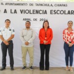 Estudiantes del Colegio de Bachilleres de Chiapas (COBACH) plantel 08, participaron en las conferencias “No a la Violencia Escolar”, impartidas por el Ayuntamiento de Tapachula a través de la Secretaría de Juventud y Deporte y la Coordinación de Prevención del Delito de la Secretaría de Seguridad Pública y Protección Ciudadana Municipal (SSPyPCM).