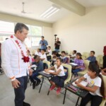 Desde este centro educativo, el mandatario señaló que, después de 41 años de abandono, ahora esta escuela cuenta con todo lo necesario para garantizar una convivencia escolar sana y una educación digna a las niñas y niños de esta localidad.
