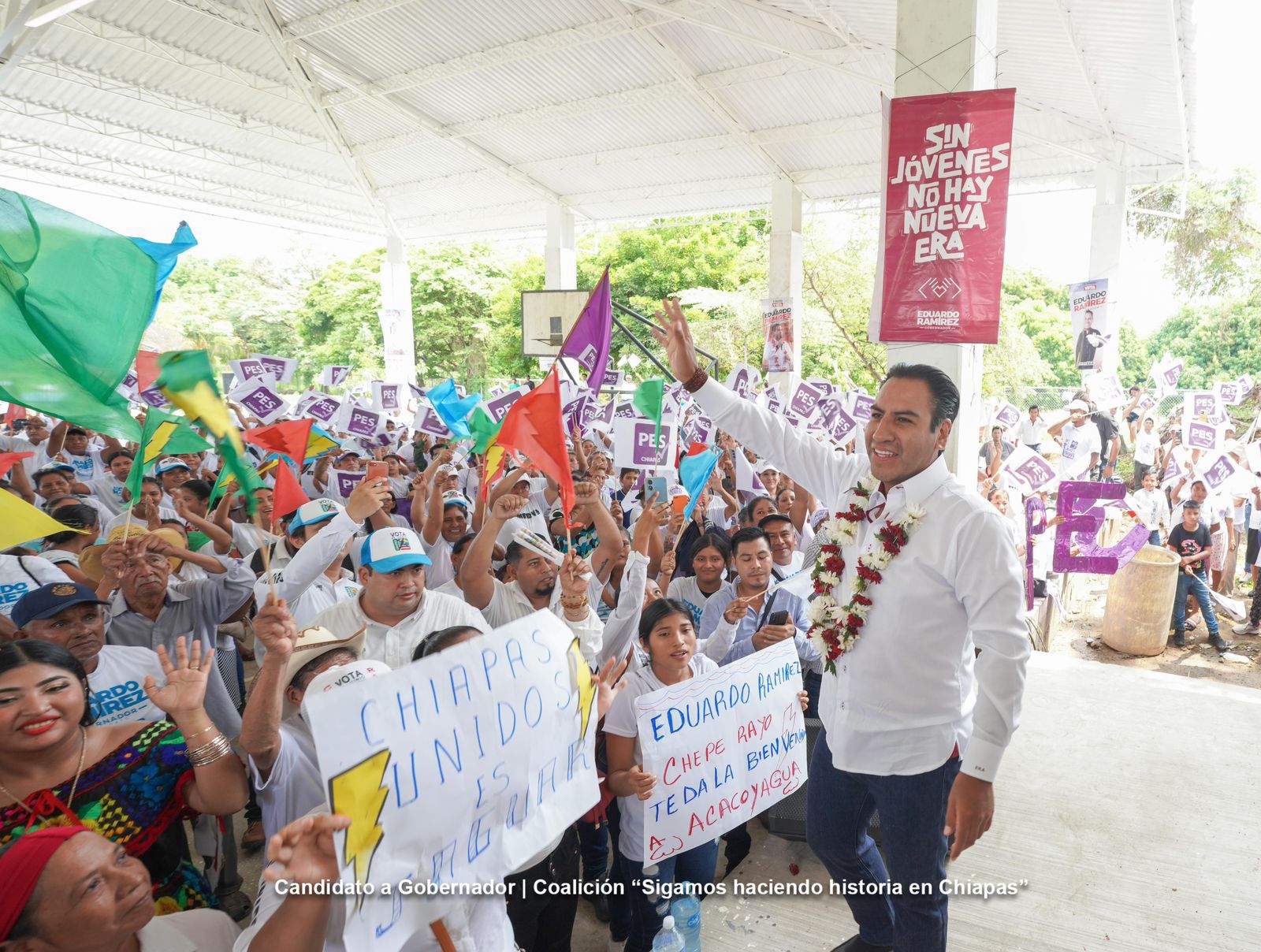 La Frontera Sur de México se industrializará y el desarrollo de la Costa-Soconusco será una realidad, aseguró Eduardo Ramírez Aguilar, candidato al gobierno del estado por la coalición “Sigamos Haciendo Historia en Chiapas”, en su visita a los municipios de Acacoyagua, Escuintla, Acapetahua, Villa Comaltitlán y Tuzantán.