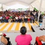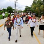 “Con esta obra estamos cumpliendo con amor y cariño al pueblo de Huehuetán, para que las y los jóvenes puedan transitar sin ninguna dificultad hacia su escuela, porque ahora luce bonita y segura, con sus guarniciones, banquetas y alumbrado solar, así como con drenaje sanitario y pluvial totalmente rehabilitado; por ello, es importante que la cuiden y la mantengan limpia y en buen estado, porque es patrimonio del pueblo”, expresó.