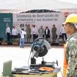 En el Campo Militar Turcom, el gobernador Rutilio Escandón Cadenas y el comandante de la 31ª Zona Militar, Román Villalvazo Barrios, atestiguaron la destrucción de armas que se encontraban a disposición de autoridades judiciales, confiscadas durante la comisión de diversos actos ilícitos, a fin de evitar que sigan siendo parte de hechos delictivos.