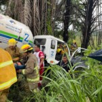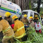 Al llegar al sitio encontraron al chofer del vehículo prensado, por lo que inician las labores de extracción y rescate.