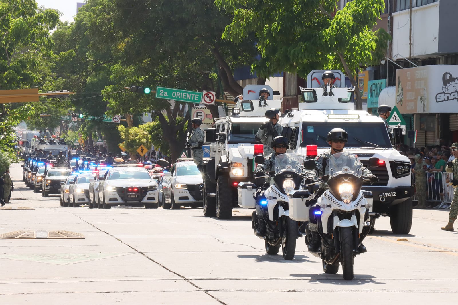 Al rendir el parte, se informó que por el contingente militar desfilaron: nueve banderas de guerra, dos jefes, 30 oficiales, 655 de tropa, 21 jinetes, 64 vehículos militares, tres embarcaciones, cuatro motocicletas, siete binomios canófilos, tres aeronaves T-6C; por el contingente de instituciones civiles: 15 banderas, 2 mil 968 personas, 217 vehículos, 13 motocicletas, 84 jinetes y dos helicópteros, concluyendo el desfile sin novedad.