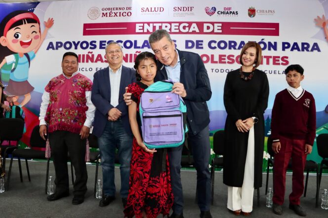 Por su parte, la directora general del Sistema DIF Chiapas, Karina Martínez López, detalló que en esta ocasión se entregaron mil 560 paquetes escolares para alumnas y alumnos de primaria y secundaria, lo que les asegura que, independientemente de su situación económica, cuenten con los útiles que contribuyen en su desarrollo educativo y a su permanencia en la escuela.