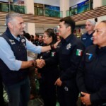 Ante regidoras, regidores, funcionarias y funcionarios públicos, Angel Torres, en calidad de invitado de honor, agradeció y reconoció la valentía, compromiso y entrega de las y los policías municipales, quienes día a día se ponen la camiseta en temas preventivos en calles, colonias, barrios, ejidos y fraccionamientos, así como en parques, escuelas y unidades deportivas, por mencionar algunos.