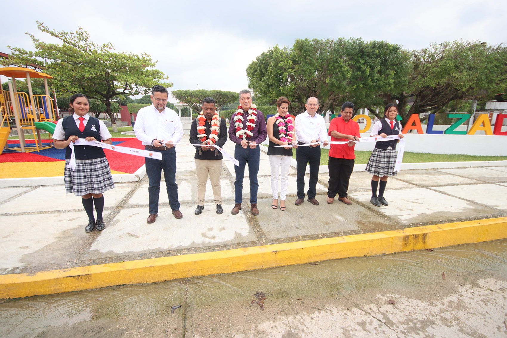 - El gobernador entregó la construcción de espacios en la Escuela Primaria “Belisario Domínguez Palencia” y la rehabilitación del parque público, de la localidad Rómulo Calzada