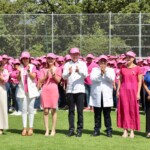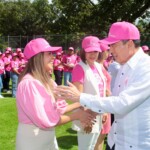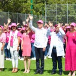 - Junto al personal de Salud, realizó el moño humano conmemorativo y constató la tecnología de los mastógrafos que son parte de los Convoyes de la Salud