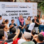 El presidente municipal de Tuxtla Gutiérrez, Angel Torres, dio el banderazo de arranque a los trabajos de pavimentación de la Avenida Noche Buena entre las Calles Durazno y Roberto Albores Guillén de la colonia Chiapas Solidario.