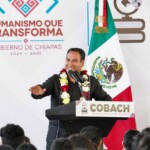 El gobernador Eduardo Ramírez Aguilar encabezó el banderazo de salida a las unidades encargadas de distribuir equipamiento, insumos y material didáctico a los 338 centros educativos del Colegio de Bachilleres de Chiapas (Cobach), donde reiteró su compromiso con el desarrollo educativo y la seguridad de las y los jóvenes, destacando que son el presente de Chiapas.
