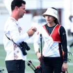 Junto a Paola Palomeque Ramos, presidenta de la Asociación Chiapaneca de Tiro con Arco; Adonaí Sánchez Osorio, director del Instituto del Deporte (Indeporte), observó atentamente la evolución de las y los arqueros chiapanecos.