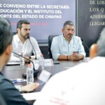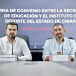 Bajo esa directriz, el secretario de Educación, Roger Mandujano Ayala y el director general del Instituto del Deporte del Estado de Chiapas (Indeporte), Adonaí Sánchez Osorio, concretaron este jueves un convenio de colaboración que tuvo lugar en las instalaciones de la dependencia educativa.