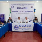 La firma del convenio estuvo al frente del consejero jurídico del Gobierno del Estado, Guillermo Nieto Arreola, y el rector de la Universidad Católica de Chiapas, Felipe Ruiz Pérez, quienes destacaron la importancia de trabajar de manera coordinada para fortalecer el conocimiento, la práctica jurídica y la formación integral de futuras personas profesionales para el bien del estado de Chiapas.