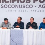 Con el firme propósito de impulsar acciones interinstitucionales que fortalezcan la salud, la prevención de enfermedades y el cuidado del medio ambiente, el alcalde Yamil Melgar, participó en los trabajos de la Reunión Regional de Municipios por la Salud Soconusco- Agua Segura, encabezada por el gobernador de Chiapas, Eduardo Ramírez en nuestro municipio.