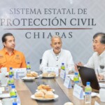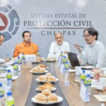 En esta reunión también estuvieron presentes el coordinador de Supervisión y Evaluación Regional, Octavio Toledo Clausse; el coordinador de Prevención y Resiliencia, José Valenti Manzo Monjarás; la directora de la Escuela Nacional de Protección Civil Campus Universitario Chiapas, Itza Máynez Villegas; el director de Reducción de Riesgos, Arturo Barrientos Pérez; y el director de Administración de Emergencias, Mariano de Jesús González Cordero.