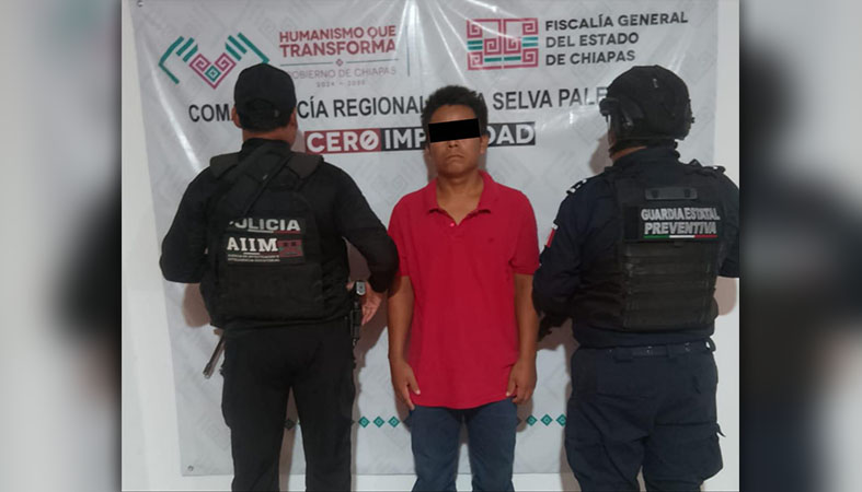 La Fiscalía General del Estado y la Secretaría de la Seguridad del Pueblo ejecutaron orden de aprehensión en contra de Alexander “N”, como presunto responsable del delito de feminicidio en grado de tentativa, cometido en agravio de una mujer de identidad reservada, por hechos ocurridos en el municipio de Palenque, el pasado 4 de julio de 2025.