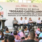 En esta ocasión, el mandatario entregó becas Rosario Castellanos a personas inscritas en el programa de alfabetización Chiapas Puede, subrayando que el aprendizaje de la lectura y la escritura es clave para transformar la realidad de las comunidades.