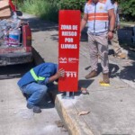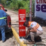 Como parte de la estrategia preventiva para la reducción de riesgos en la temporada de lluvias y ciclones tropicales, se instalan estos señalamientos para alertar y concientizar a la población sobre el riesgo que existe al cruzar por el lugar mientras llueve.